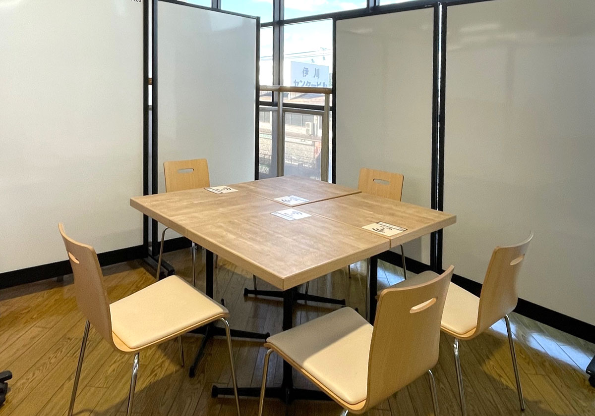 無料のミーティングルーム(定員8名)。予約がなくても空いていれば利用できます。